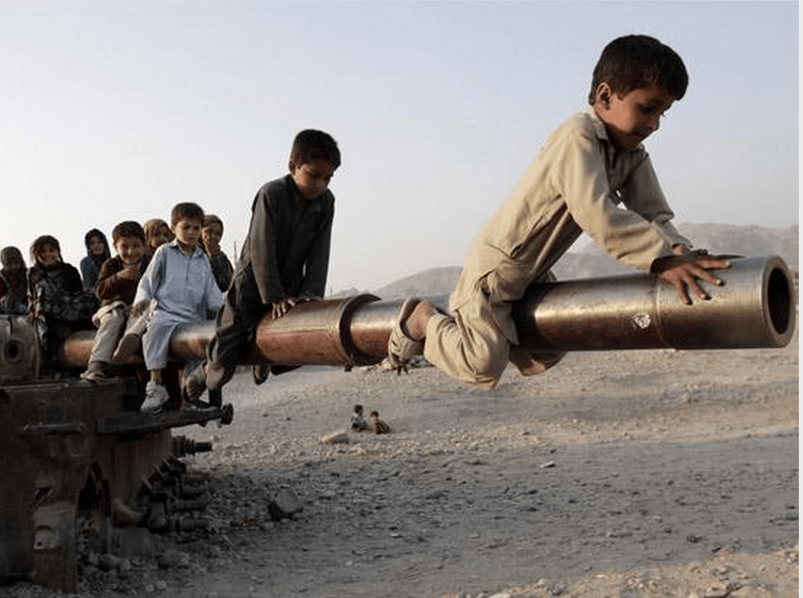 Children play on a damaged Soviet tank on the outskirts of Jalalabad east of Kabul, Afghanistan, Nov 13, 2012. ABC News.