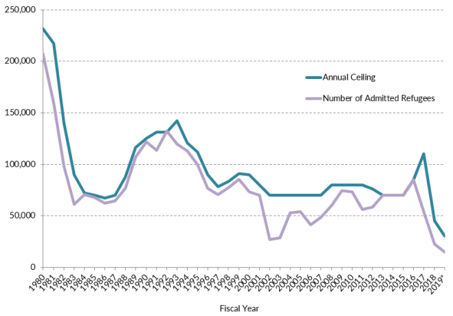 A recent news story suggested that the Trump administration has considered another drastic reduction next year in the maximum number of refugees allowed into the United States (the annual ceiling), perhaps to fewer than 10,000 people. One estimate suggested the administration could set the ceiling at zero refugees.